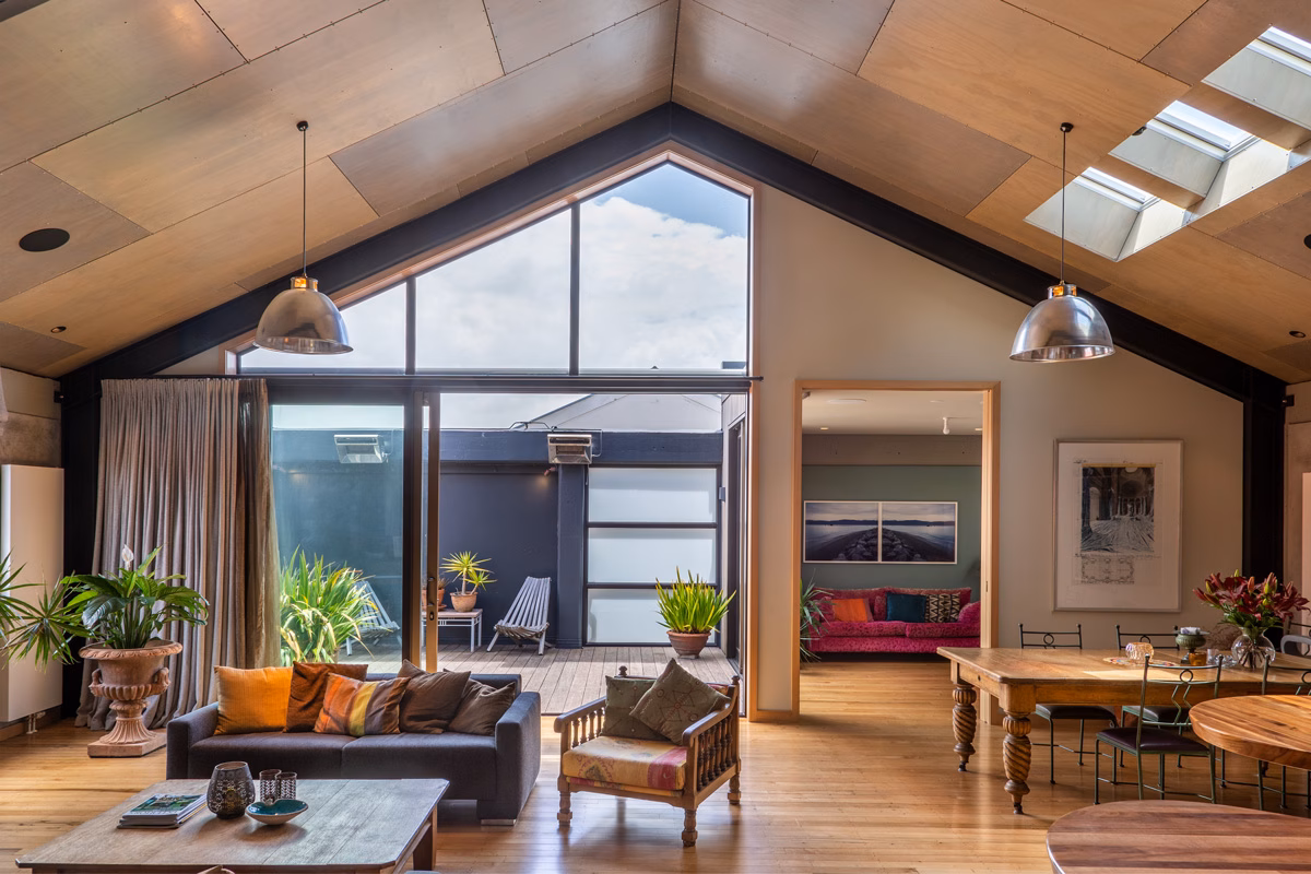 Ngahuru, formerly a plastics fabrication factory, a panel beater and more recently a photo lab, this free-standing inner city building has been transformed by John Mills Architects into an elegant, architectural inner-city home.